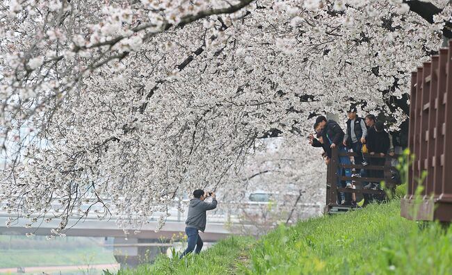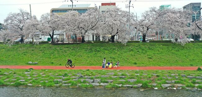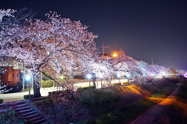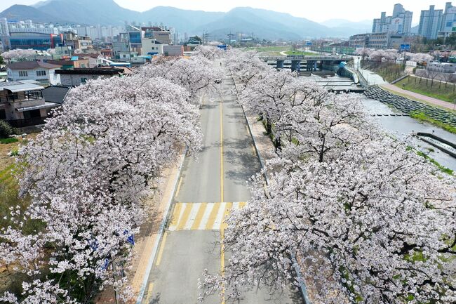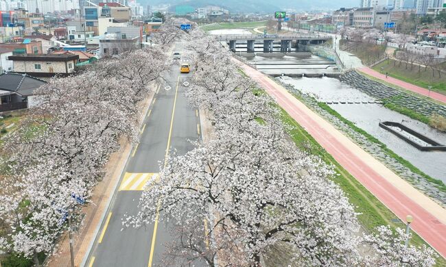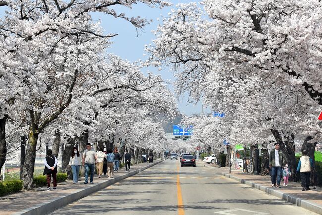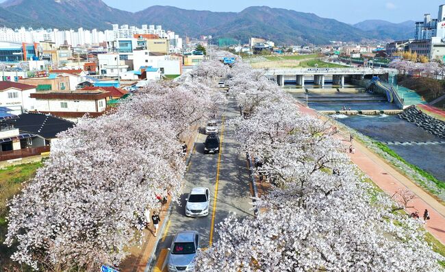 정읍의 벚꽃길은 4킬로미터 구간의 정읍천변길을 따라 울창한 터널을 형성하고있다.