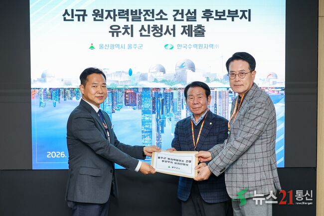 한편 신규원전 자율유치 울주군 범대책위원회는 지난 4일 한수원 인재개발원부터 울주군청까지 29.2㎞를 도보로 이동해 신규원전 자율유치 신청 건의안과 주민 서명지를 전달했다. 이어 울주군의회는 전날인 16일 제244회 임시회를 개최해 울주군이 제출한 ‘신규원전 건설 후보부지 자율유치 신청 동의안’을 심의·가결했다.