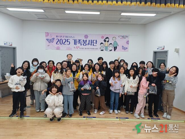 [뉴스21 통신=박정임기자 ]울산동구자원봉사센터, 2025 가족봉사단 해단식 및 힐링프로그램 진행사진제공=울산동구자원봉사센터울산동구자원봉사센터(이사장 이순자)는 12월 13일(토) 오전 10시, 2025 가족봉사단 해단식과 함께 가족봉사단원을 위한 힐링프로그램을 진행했다고 밝혔다.2025 가족봉사단은 4월 두 차례의 소양교육을 시작으로, 5월...