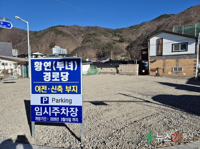 태백시(시장 이상호)는 황연부녀경로당 이전 신축 예정 부지를 활용해 임시주차장을 조성하고, 본격적인 공사 착공 전까지 주민들에게 개방한다고 밝혔다.이번 임시주차장은 황연동 2통 일원 주차 공간 부족 문제를 완화하기 위해 마련됐다. 시는 사업 예정 부지의 경계석을 철거하고 지반을 평탄화해 차량 주차가 가능하도록 정비했으며, .