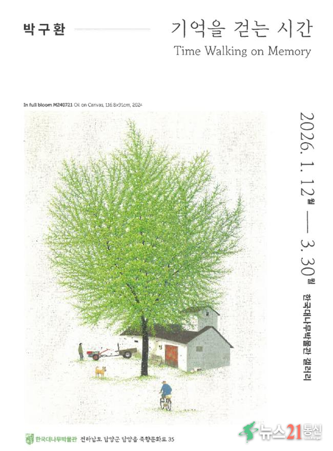 담양군 한국대나무박물관, 박구환 작가 특별 초대전 열어- 12일부터 유년 시절의 기억을 예술로 풀어낸 ‘기억을 걷는 시간’ 전시 운영 담양군(군수 정철원)은 지역 문화예술 자원을 발굴·조명하기 위한 특별 기획전의 일환으로 서양화가 박구환 작가 초대전 ‘기억을 걷는 시간’을 오는 1월 12일부터 3월 30일까지 한...