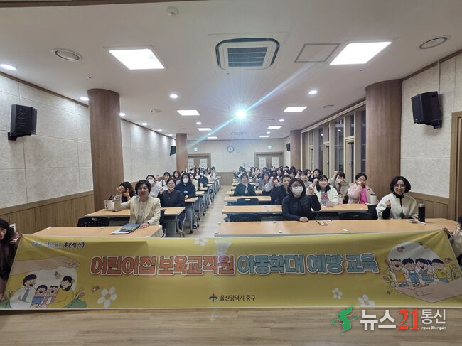 [뉴스21 통신=김보미기자 ](사진출처=중구청)울산 중구(구청장 김영길)가 지난 17일 울산중구육아종합지원센터 강의실에서 어린이집 보육교직원 50여 명을 대상으로 아동학대 신고의무자 교육을 실시했다.