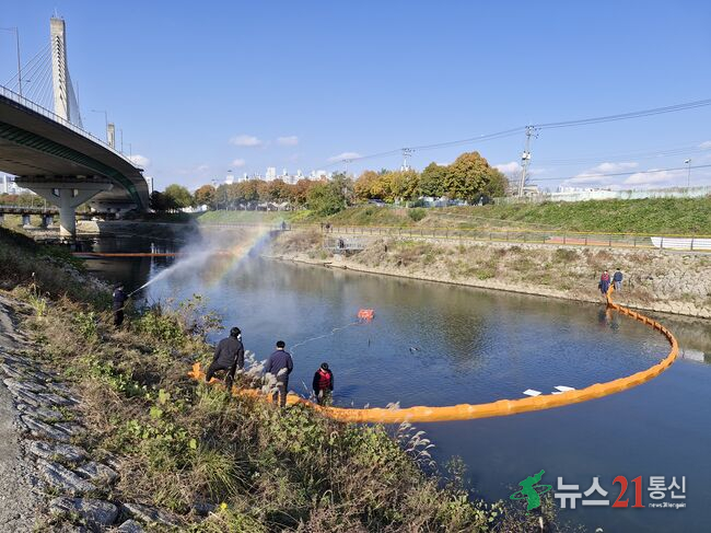 [뉴스21통신/장병기] 광주 광산구가 18일 풍영정천 일대에서 수질오염사고 대응을 위한 민관 합동 방제훈련을 성공적으로 마쳤다. 이번 훈련은 예기치 못한 오염 사고 발생 시 신속한 초동 대처와 방제 조치 역량을 강화하기 위해 마련되었으며, 지역 기관·단체 10곳 약 80명이 참여했다.실전 같은 시나리오로 현장 대응력 점검 훈련은 하...