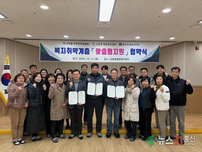 [뉴스21 통신=최세영 ]▲ 사진제공=울산광역시남구청선암동 주민자치위원회(위원장 권봉현)와 선암동행정복지센터(동장 유광수), 한국소방공사(주)(대표 엄한용)은 15일 선암동행정복지센터에서 복지취약계층을 위한 ‘맞춤형 지원’ 업무협약을 체결했다. 이번 협약은 생활 여건이 열악한 가구마다 필요한 지원이 다르다는 점을...