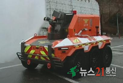 ‘소방 2단계’가 내려졌던 충북 음성 공장 화재에서 밀폐된 공간에 불길이 치솟는 가운데, 방열 커버를 덮은 채 물을 뿜으며 접근하는 ‘무인소방로봇’이 투입됐다.무인군용차량에 진압 장비를 장착한 이 로봇은 17층 높이까지 진화가 가능하고, 짙은 연기 속에서도 사물을 식별할 수 있다. 소방청과 현대차가 공동 개발했으며...