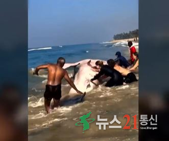 거대 고래상어 살리려 해변에 모였다…3시간 사투 끝 기적의 구조
