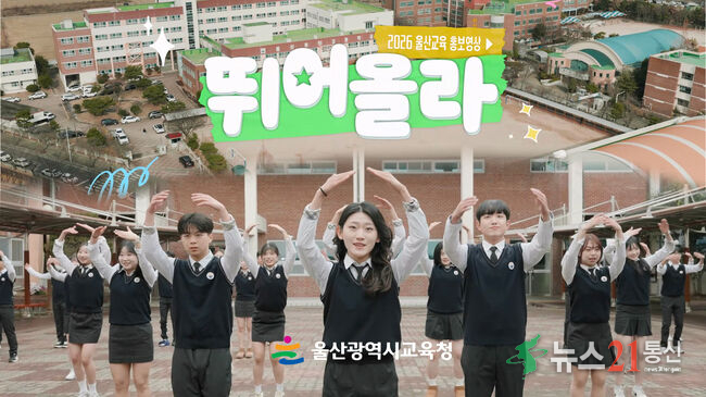 [뉴스21 통신=최세영 ]울산광역시교육청(교육감 천창수)은 7일 2026년 울산교육 정책 홍보영상 ‘뛰어올라!’를 공식 유튜브에 공개했다. 이번 영상은 수업 나눔을 중심으로 한 질문하는 학교, 독서와 토론이 살아 있는 교실, 학생 한 명 한 명의 성장을 지원하는 울산교육의 방향을 울산동천고등학교 댄스부 학생들의 노래와 율동에...
