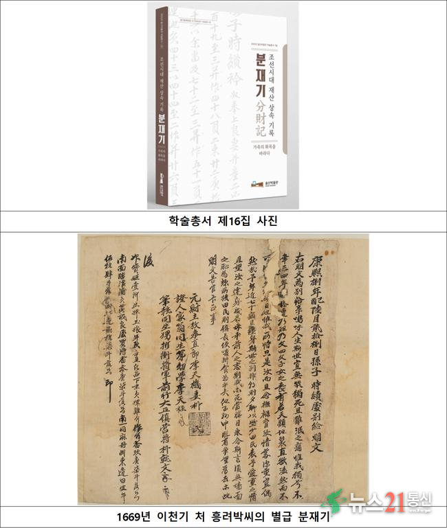 [뉴스21 통신=최세영 ]울산박물관은 학술총서 제16집 ‘조선시대 재산 상속 기록, 분재기–가족의 화목을 바라다’를 발간했다고 밝혔다. ‘분재기(分財記)’란 조선시대 재산을 상속하는 사람이 생전에 토지, 가옥, 노비 등의 재산을 자손에게 나눠주며 기록한 문서를 말한다. 조선시대 사회 경제사뿐만 아니라 조선시대 울산...