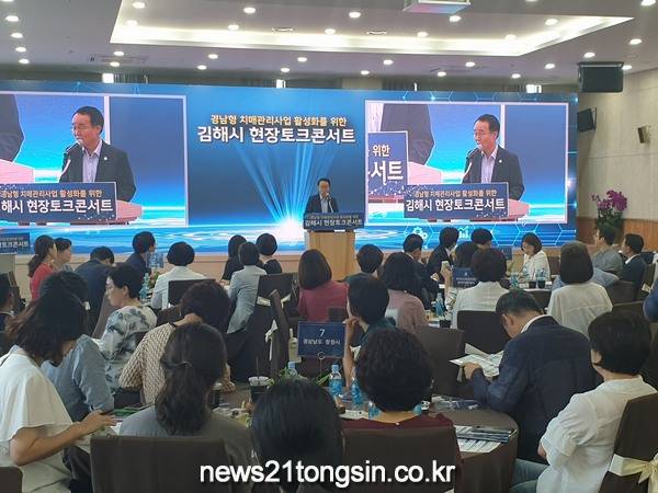 경상남도는 26일(금) 오후, 김해시 중소기업비즈니스센터 대연회장에서 경남형 치매관리사업 활성화를 위한‘현장 토크콘서트’를 개최했다.