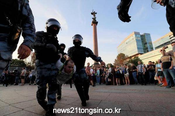 모스크바 시 당국은 허가받지 않은 시위를 불법으로 규정하고 시위참가자들과 충돌하며 해산에 불응한 시위참가자 100명을 체포했다.
