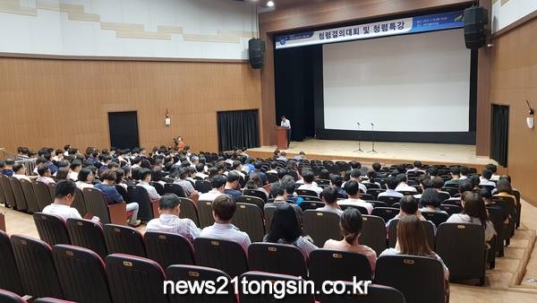 18일, 여주시(시장 이항진)는 공직자의 청렴도 향상을 위해 500여 공직자들이 참석한 가운데 여주세종국악당에서 청렴 결의대회 및 청렴특강을 실시하였다.