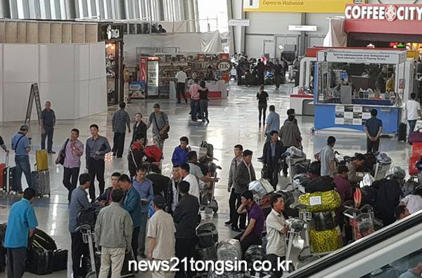 사진은 2018년 블라디보스톡 국제공항에서 북한 건설 노동자 50~60여명이