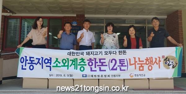 대한한돈협회안동시지부는 8월 5일 오후 2시에 저소득층 및 복지사각지대에 놓인 이웃들에게 조금이나마 보탬이 되고자 돼지고기 2,310㎏(1천만원 상당)을 안동시에 전달했다.