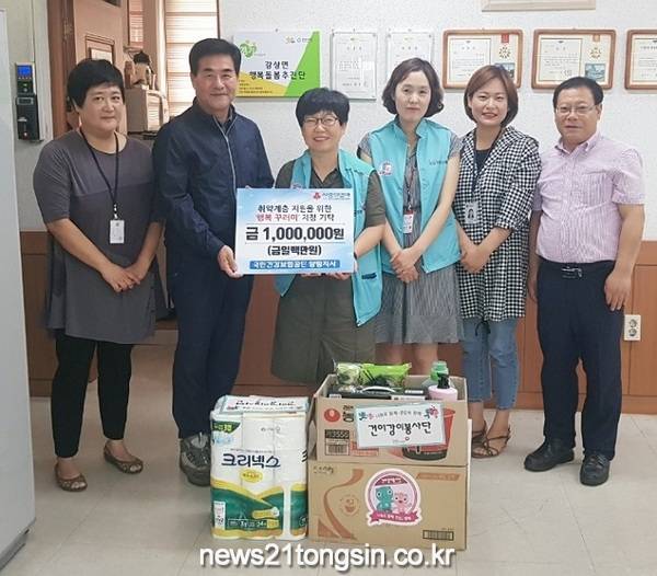 국민건강보험공단 양평지사(지사장 송영)는 지난 7일 지역의 어려운 이웃을 위해 강상면사무소(면장 김학제)에 100여만 원의 이웃돕기 물품을 전달했다.