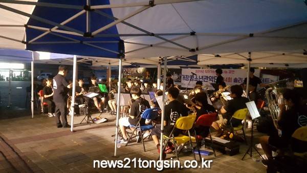 이번 공연은 거창관내에 재학중인 학생들로 구성된 45명의 ‘거창청소년관악단’ 회원들이 출연해 ∆캐리비언의 해적, ∆바람이 불어오는 곳, ∆아름다운 나라 등의 곡들을 관악연주로 들려주었다.