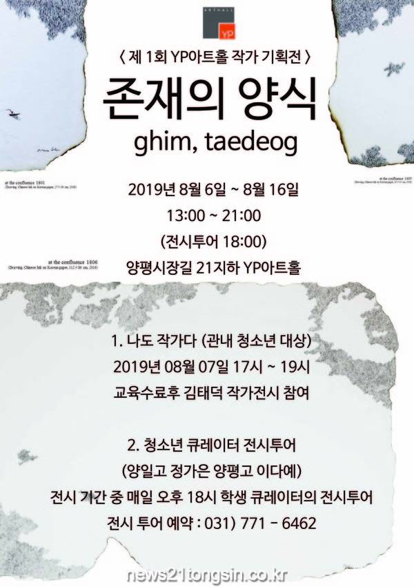 양평군청소년문화복합소극장 YP아트홀(양평시장길21, 지하층)에서 <</span>제 1회 YP아트홀 작가 기획전> “존재의 양식” 전시가 오늘 16일까지 무료로 진행된다. 이번 전시는 일반적으로 보기 힘든 개념미술전시이며 김태덕 작가의 드로잉, 설치미술, 사진 작품을 볼 수 있다.