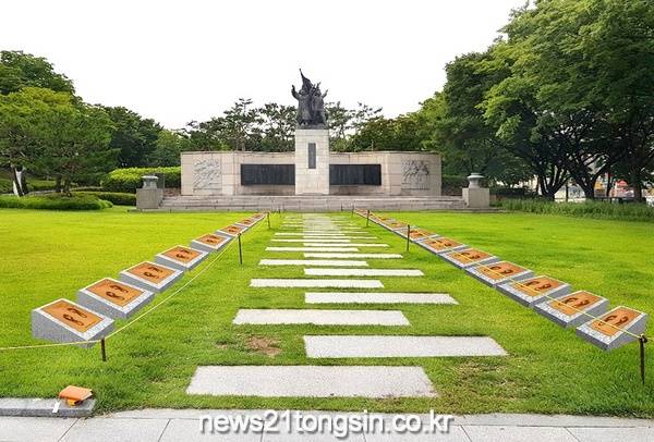 ‘독립과 민주의 길’은 독립지사 30명의 풋프린팅 동판과 주요 현대사를 담은 100개 동판으로 조성됐다.