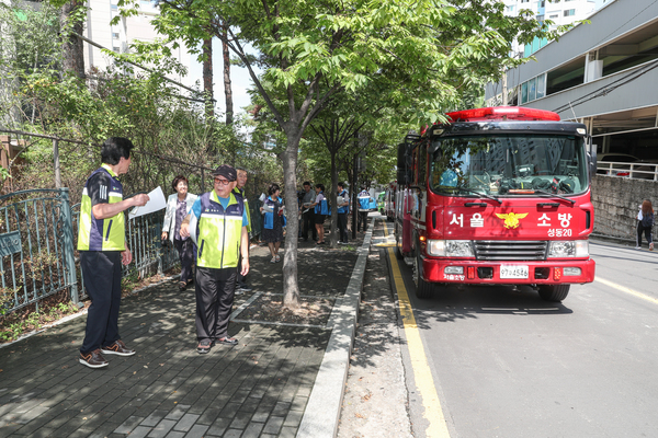 서울 성동구(구청장 정원오)가 화재 시 골든타임 확보를 위한 ‘소방차 스마트 진입로 시스템’ 구축을 위해 지난 13일 오후 응봉동 265번지 일대에서 소방차 진립경로 현장 조사를 실시했다.