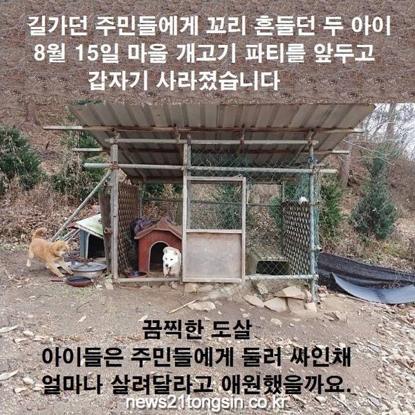 시민연대는 ‘대한민국에는 동물보호법이 엄연히 존재한다. 그러나 이 마을에서는 공개된 장소에서 키우던 개를 끔찍하게 도살하여 축제를 벌이고 있다.