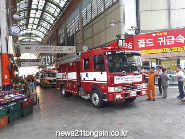 조인희 시의원은 “전통시장 역사상 최초로 소방차가 진입하는 훈련에 소방관계자 분들에 감사하다는 말씀과 화재발생시 신속한 출동을 위해 시민과 상인회의 적극적인 협조를 부탁드린다”고 전했다.