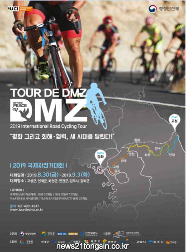 인천광역시(시장 박남춘)는 오는 8월 30일부터 9월 3일까지 5일간의 일정으로 비무장지대(DMZ)와 접경지역을 배경으로 ‘뚜르 드 디엠지(Tour de DMZ) 2019 국제자전거대회’가 열린다고 밝혔다.