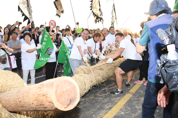 줄다리기 줄은 총 길이 40m로 굵은 원줄과 사람이 당길 수 있는 줄기 모양의 곁줄로 구성됐으며, 줄다리기를 통해 두 구민들 간의 화합을 도모할 예정이다.