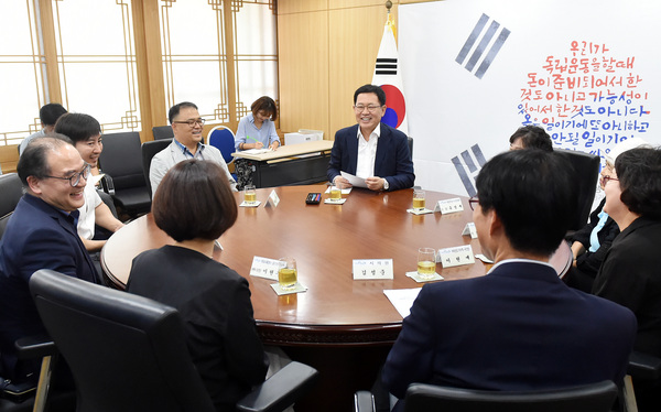 인천광역시(시장 박남춘)는 지난 26일 인천시장 접견실에서 지역아동센터 등 4개 분야 인건비 지급기준이 없는 사회복지시설 종사자들과 소통 간담회를 개최, 복지부 가이드라인을 적용받지 못하는 사회복지시설*에 대하여 전국최초로 인건비 지급기준을 마련하여 2020년부터 종사자 처우개선을 추진하기로 했다.