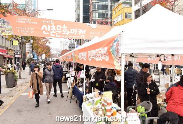 한편 단어부터 생소했던 ‘사회적경제’ 알리기를 위해 지난 2014년 시작된 신촌문화마켓은 14회째를 맞으며 협동조합, 사회적기업, 마을기업, 자활기업, 공정무역기업, 서울형 중소기업 등의 홍보와 판로를 지원하는 사회적경제 장터로 자리매김해 오고 있다.