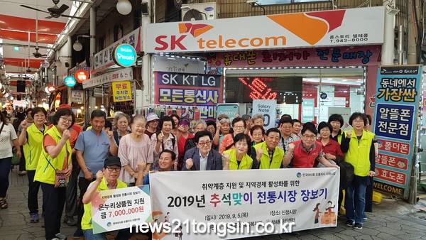 9월 5일에는 저소득세대 70명에게 온누리상품권을 10만원씩 후원해 지역 내 전통시장인 신창시장에서 봉사자들과 함께 직접 추석맞이 생필품을 구매하는 ‘전통시장 장보기’ 행사를 가졌다.