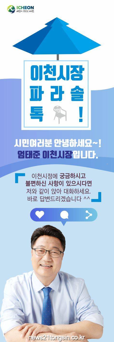 엄태준 이천시장은 “이천시장 파라솔 톡은 중앙통을 오가는 많은 시민들의 작은 시청이 되어줄 것이며, 이를 통해 시민들의 생생한 목소리를 청취하고 시정에 반영하여 살기 좋은 이천을 만들겠다.”라고 밝혔다.