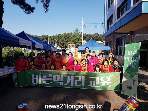한국여성농업인 이천시연합회(회장 이재경)와 경기도연합회(회장 이옥배)는 18일 이천시 안흥동에 위치한 이천중학교에서 가래떡과 주먹밥 제철과일 도시락을 나누어주며 바른 먹거리캠페인을 실시했다.