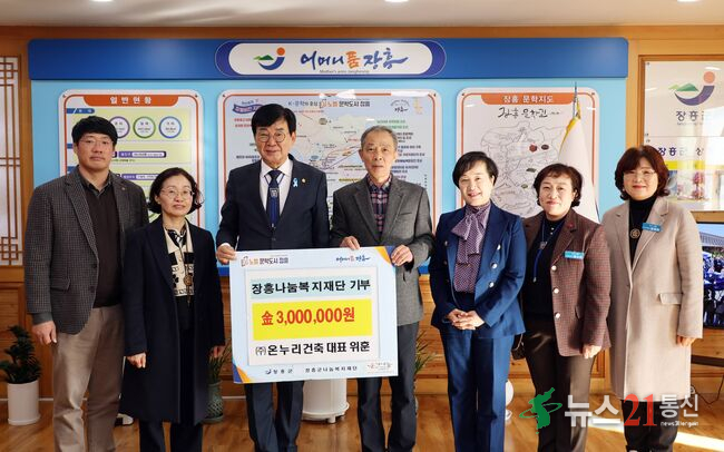㈜온누리건축(대표 위훈)은 지난 12월 31일, 어려운 이웃을 돕기 위해 (재)장흥군나눔복지재단에 성금 300만원을 기부했다. ㈜온누리건축은 지역자활센터를 기반으로 운영되는 자활기업으로, 취약계층의 자립과 일자리 창출을 목표로 활동하고 있다. 이날 전달된 기탁금은 장흥군나눔복지재단과 연계해 다양한 복지사업에 활용될 예정이다. .