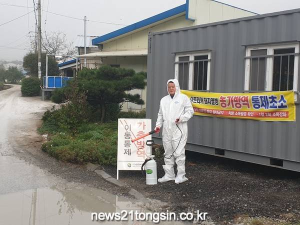 창전동행정복지센터에 따르면 백사면 신대리와 조읍리 각 1개씩 2개 초소에 10월 7일부터 16명의 창전동 통장들이 평일 2명씩 방역초소를 나와 마을을 오가는 차량에 분무소독을 벌이고 가축운반 차량을 통제하고 있다.