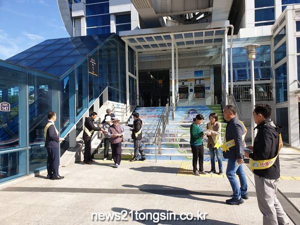 (뉴스21통신/유재원기자) = 대구강북경찰서(서장 박만우)는 2019. 10. 10. 09:30경 대구 북구 팔거천동로 소재 동천역에서 3호선을 이용하는 주민들을 상대로 메신저 문화상품권 사기와 보이스 피싱 예방문구가 새겨진 물티슈를 나누어 주며 사이버범죄 예방활동을 실시하였다.