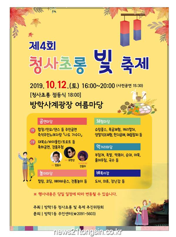 도봉구(구청장 이동진)는 오는 10월 12일 오후4시부터 방학사계광장 여름마당(방학동 709)에서 ‘제4회 청사초롱 빛 축제’를 개최한다.
