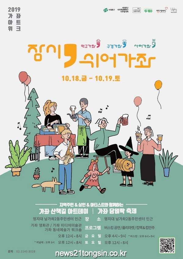 서대문구는 10월 18일~19일 이틀간 정오부터 저녁 9시까지 남가좌2동주민센터 인근 골목상권에서 문화 축제의 장 ‘2019 가좌아트위크, 잠시 쉬어가좌’를 개최한다.