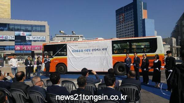 경남도는 10월 14일 오후 2시, 마산합포구 동성동에 위치한 오동동 문화광장에서 부마민주항쟁 상징버스 운행 제막식을 개최하고, 부마민주항쟁 국가기념일을 기념하는 상징버스 운행을 축하하는 자리를 마련했다.