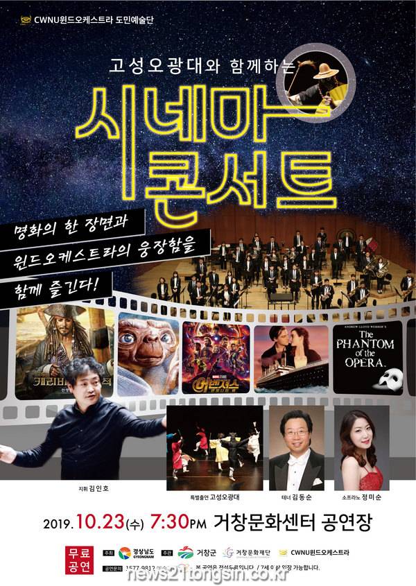 거창군은 오는 10월 23일 저녁 7시 30분 거창문화센터 공연장에서 경남도민예술단의 “고성오광대와 함께하는 시네마 콘서트”가 공연된다고 밝혔다.