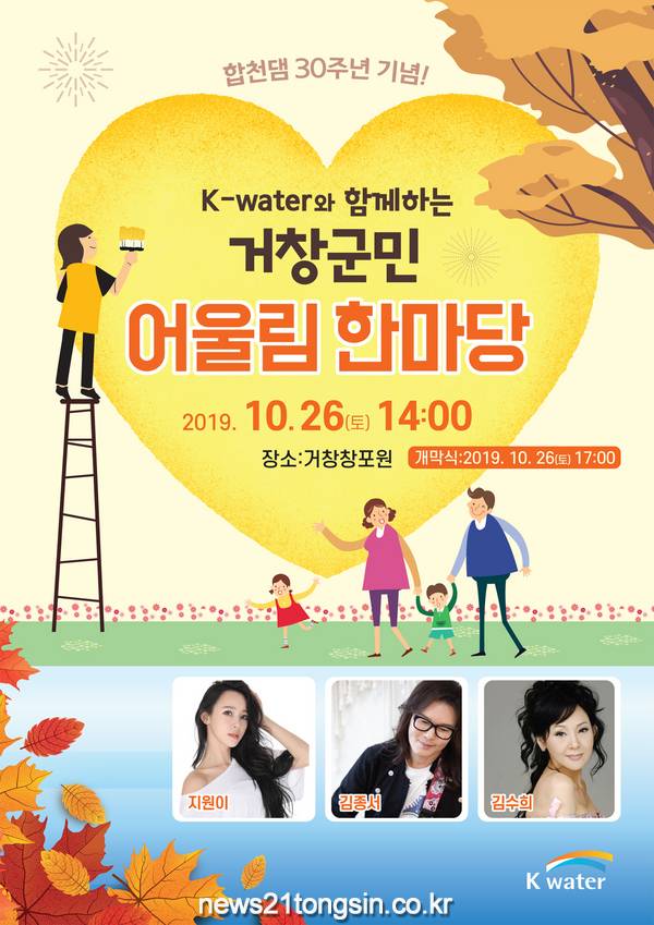 K-water 합천댐 관리단에서는 오는 26일 ‘합천댐 30주년 기념!’ “K-water와 함께하는 거창군민 어울림 한마당 행사”를 거창창포원에서 개최한다고 23일 밝혔다.