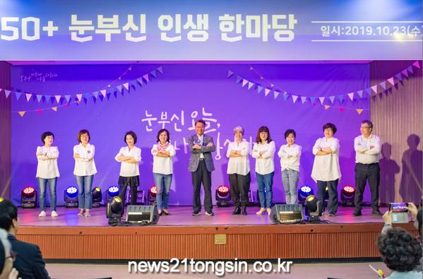 광진구(구청장 김선갑)가 23일 구청 대강당에서 50+세대들을 위한 축제 ‘50+눈부신 인생 한마당’을 처음으로 개최했다.