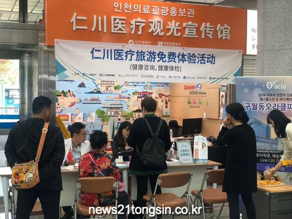 인천광역시(시장 박남춘)와 인천관광공사(사장 민민홍)는 외국인환자 유치 활성화를 위한 차별화된 의료 서비스 홍보 마케팅 전략으로 인천항 국제여객터미널에서 10월 22일(수)부터 10월 30일(수)까지 7일간에 걸쳐서 중국 의료관광객을 위한 의료기관별 릴레이 메디컬 무료체험 이벤트를 실시한다고 밝혔다.