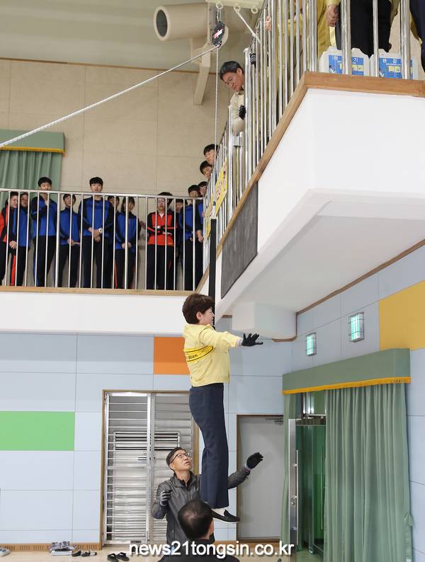 (뉴스21통신/유재원기자) = 대구시교육청은 「2019 재난대응 안전한국훈련」 첫날인 10월 28일(월) 오전 10시 30분, 대구동중학교 강당에서 ‘완강기를 이용한 화재대피훈련’을 실시했다.