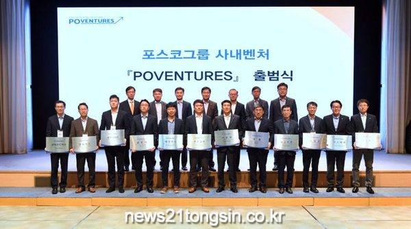 포스코는 도전적이고 창의적인 조직 문화 조성과 미래 신성장사업 발굴을 위해 지난 6월 사내벤처 제도 ‘포벤처스(POVENTURES)’를 도입하고 그룹사 임직원들을 대상으로 아이템 공모를 실시했다. 포스코 뿐만 아니라 포스코인터내셔널, 포스코건설, 포스코ICT, 포스코에너지 등 그룹사에서 72개 아이템을 접수했으며, 심의 단계를 거쳐 최종 12개 사내벤처팀을 선발했다.