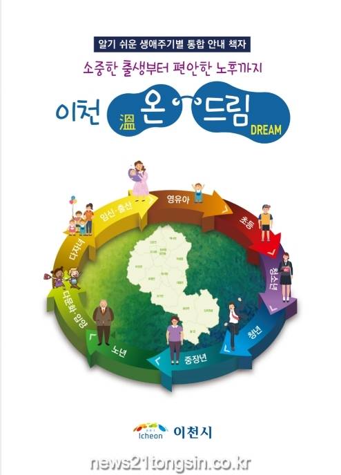 「이천 온(溫)-드림(Dream)」은 시민 모두가 아이와 더불어 따뜻한 정을 느끼고, 꿈을 펼치며 살아갈 수 있도록 지역이 함께 노력하겠다는 의미로, 금번 2차 발간시에는 ▲임신·출산 ▲영유아 ▲초등 ▲청소년 ▲청년 ▲중장년 ▲노년 ▲다문화·입양에 ▲다자녀를 추가하고, 신규사업 발굴 및 기존 사업 현행화 작업을 거쳐 총 9단계 195종의 서비스를 담아, 개인별 생애주기에 맞는 서비스를 보다 쉽게 찾아볼 수 있도록 하였다.