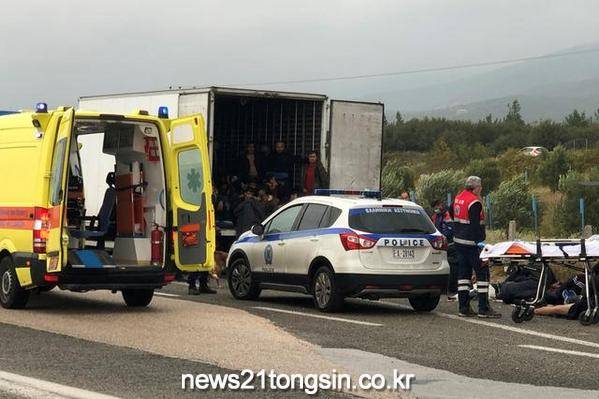 그리스 북부지역에서 경찰이 냉동 트럭에 탄 불법 이주민 41명을 적발했다.
