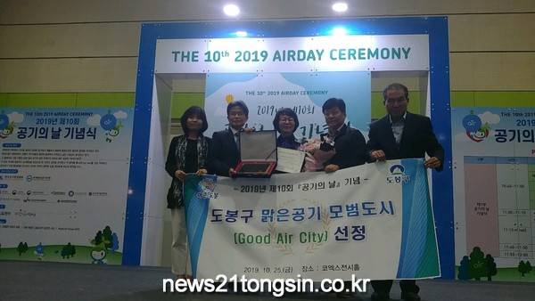 도봉구(구청장 이동진)는 지난 10월 25일 코엑스 전시홀에서 개최된 ‘제10회 공기의 날 기념식’에서 서울 자치구 최초로 ‘맑은 공기 모범도시-Good Air City’로 선정되었다.