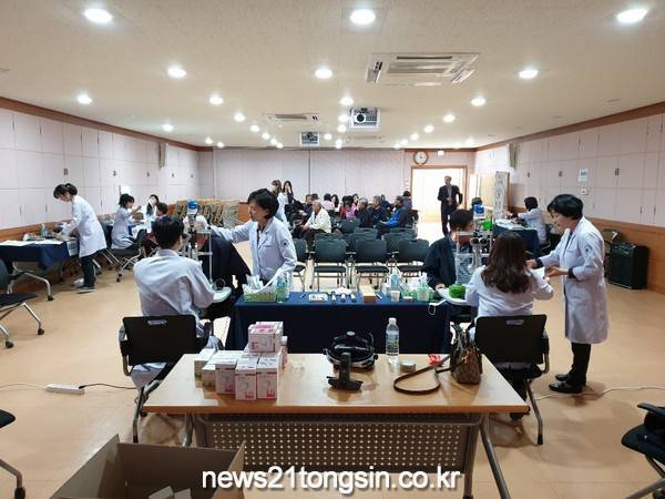 이에 거창군은 무료 안(眼) 검진을 통해 204명 어르신들의 1차 문진 및 시력측정, 2차 안압검사, 굴절검사와 세극 현미경검사를 실시했으며, 검진 후 약물투여와 백내장 지연제 등 약품지원과 돋보기가 필요한 대상자에게는 돋보기를 지원했다.