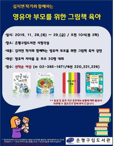이 프로그램은 영유아 대상의 도서를 집필한 김지연 작가와 함께 진행되며, 영유아 자녀를 둔 부모들에게 그림책을 활용한 육아 방법을 강연한다.