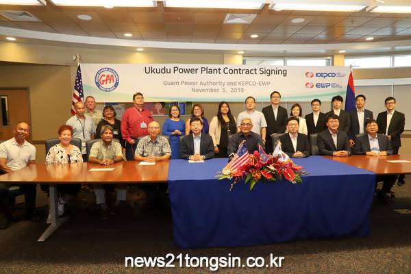 한국전력(대표이사 사장 김종갑)은 11월 5일 괌 전력청(GPA)과 괌 우쿠두 가스복합발전(200MW급) 프로젝트 전력판매계약을 체결했다.