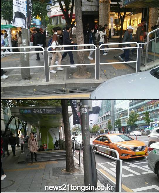 마포구(구청장 유동균)는 지난 10월 28일 홍대입구역 8번 출구 앞에 안전사고 예방을 위한 ‘보도 펜스’를 설치했다고 밝혔다.